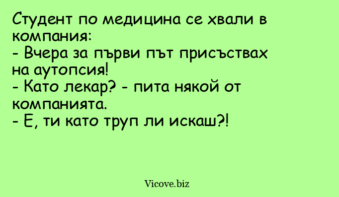 - Еми... за проктолог съм много весел. За венеролог съм много приказлив. А за гинеколог съм много влюбчив!