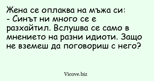 Жена се оплаква на мъжа си: - Синът...