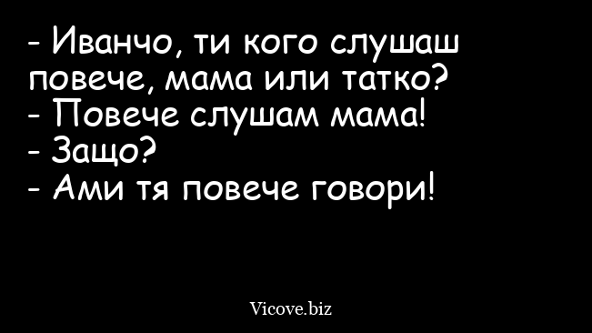 - Иванчо, ти кого слушаш повече, мама или татко?