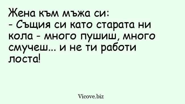 - Същия си като старата ни кола - много пушиш, много смучеш... и не ти работи лоста!