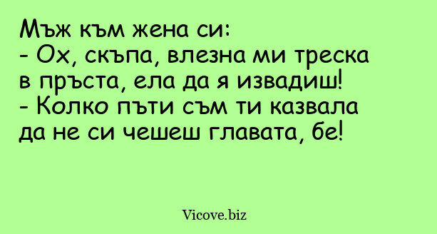 - Ох, скъпа, влезна ми треска в пръста, ела да я извадиш!