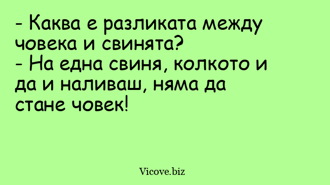 - Каква е разликата между човека и свинята?