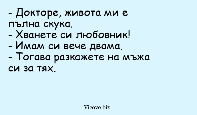 - Докторе, може ли да не е тази вечер, че още ме боли.