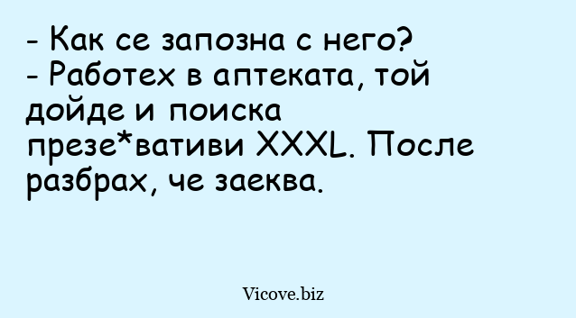 - Работех в аптеката, той дойде и поиска презе*вативи XXXL. После разбрах, че заеква.
