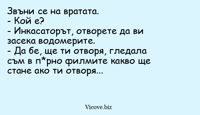 - Да бе, ще ти отворя, гледала съм в п*рно филмите какво ще стане ако ти отворя...