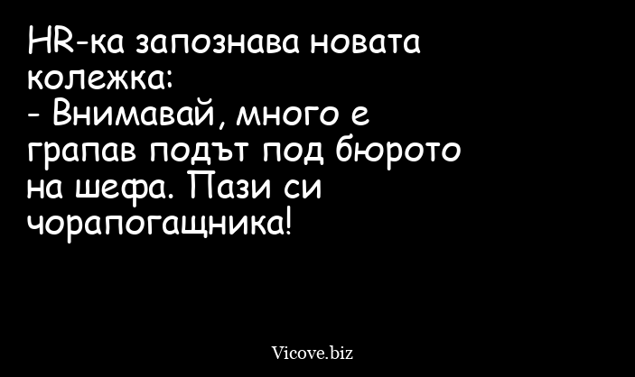 - Внимавай, много е грапав подът под бюрото на шефа. Пази си чорапогащника!