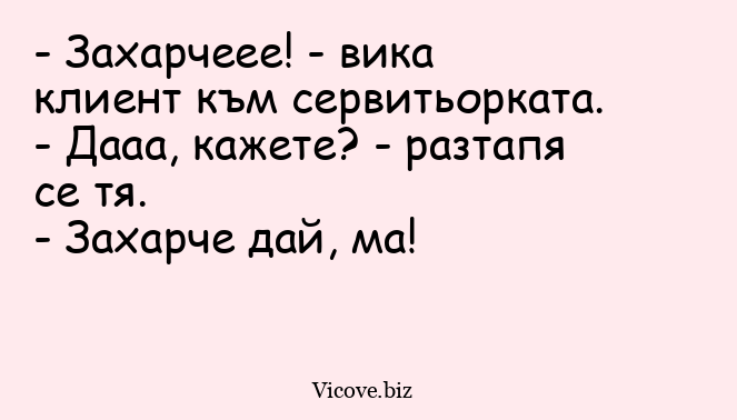 - Захарчеее! - вика клиент към сервитьорката.