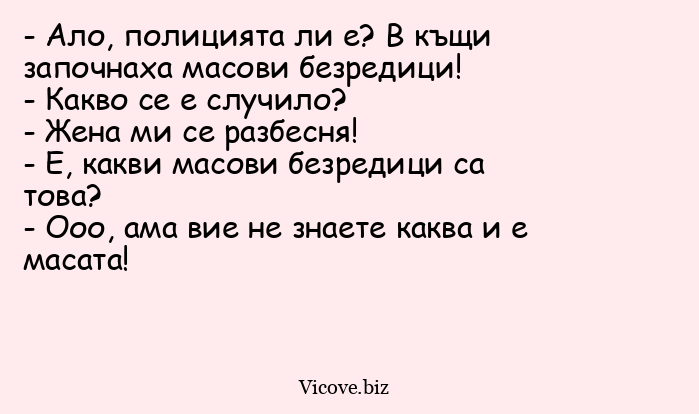 - Ало, полицията ли е? В къщи започнаха масови безредици!