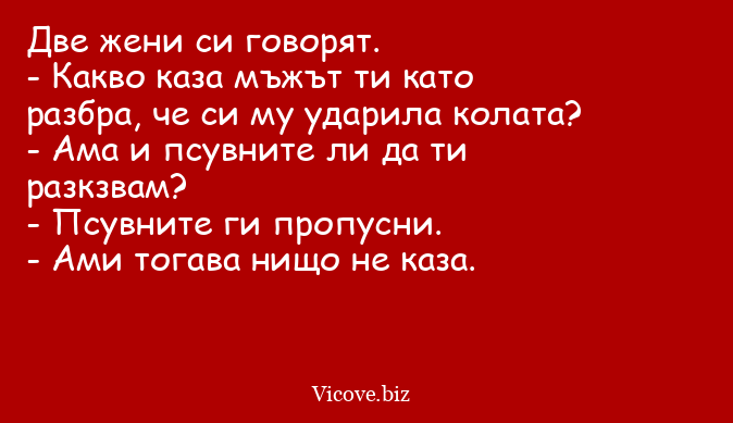 - Какво каза мъжът ти като разбра, че си му ударила колата?