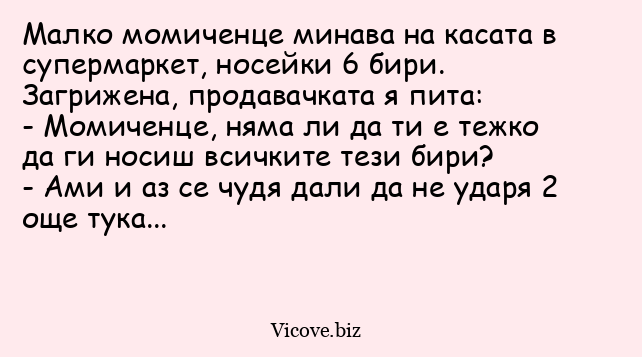 - Момиченце, няма ли да ти е тежко да ги носиш всичките тези бири?