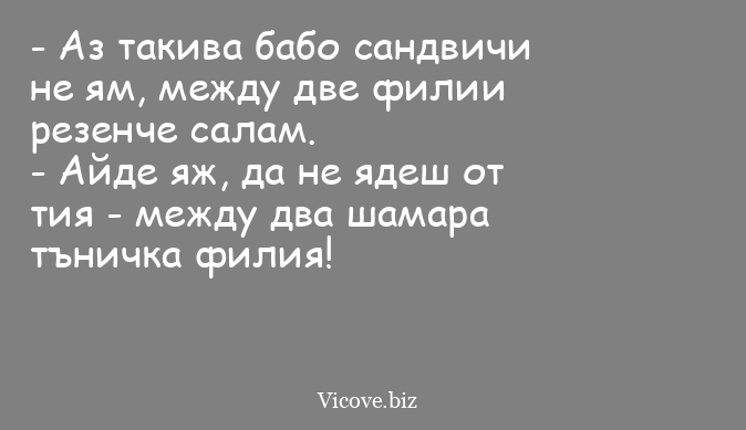 - Аз такива бабо сандвичи не ям, между две филии резенче салам.