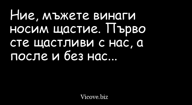 Ние, мъжете винаги носим щастие. Първо сте щастливи с нас, а после и без нас...
