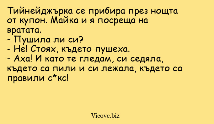 - Аха! И като те гледам, си седяла, където са пили и си лежала, където са правили с*кс!