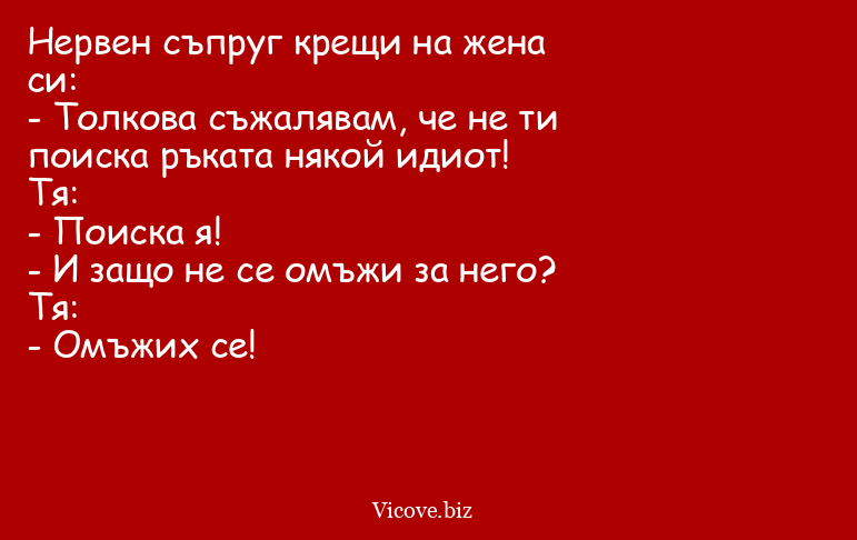 - Толкова съжалявам, че не ти поиска ръката някой идиот!