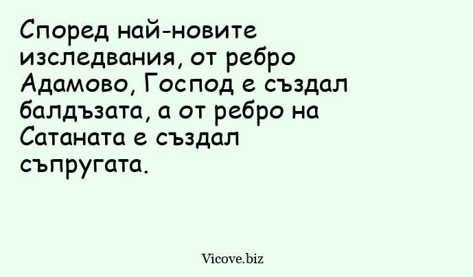 Според най-новите изследвания, от ребро Адамово, Господ е създал балдъзата, а от ребро на Сатаната е създал съпругата.