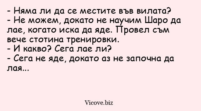 - Не можем, докато не научим Шаро да лае, когато иска да яде. Провел съм вече стотина тренировки.