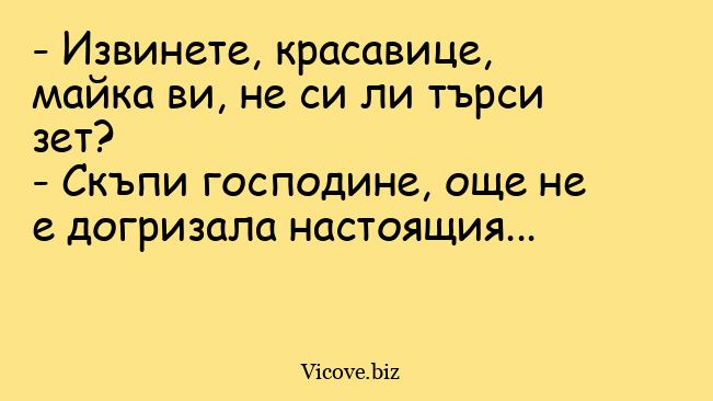 - Извинете, красавице, майка ви, не си ли търси зет?