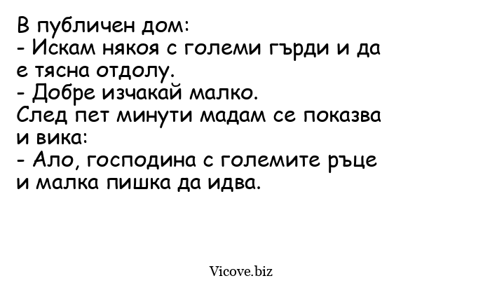 - Ало, господина с големите ръце и малка пишка да идва.