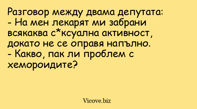 - На мен лекарят ми забрани всякаква с*ксуална активност, докато не се оправя напълно.