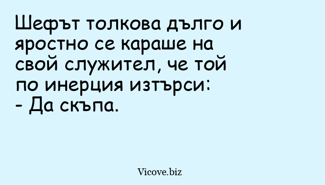 Шефът толкова дълго и яростно се караше на свой служител, че той по инерция изтърси: