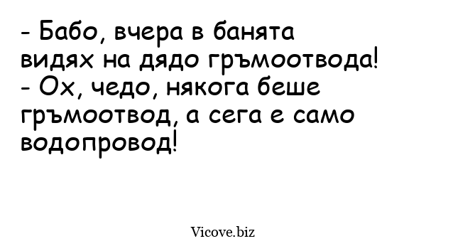 - Бабо, вчера в банята видях на дядо гръмоотвода!