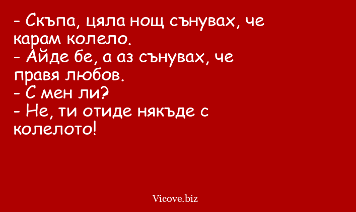 - Скъпа, цяла нощ сънувах, че карам колело.