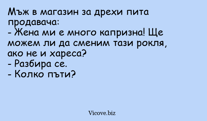 - Жена ми е много капризна! Ще можем ли да сменим тази рокля, ако не и хареса?