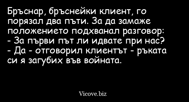Бръснар, бръснейки клиент, го порязал два пъти. За да замаже положението подхванал разговор: