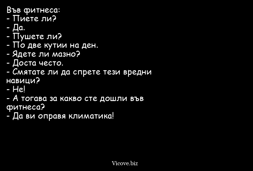 Във фитнеса: - Пиете ли? - Да...