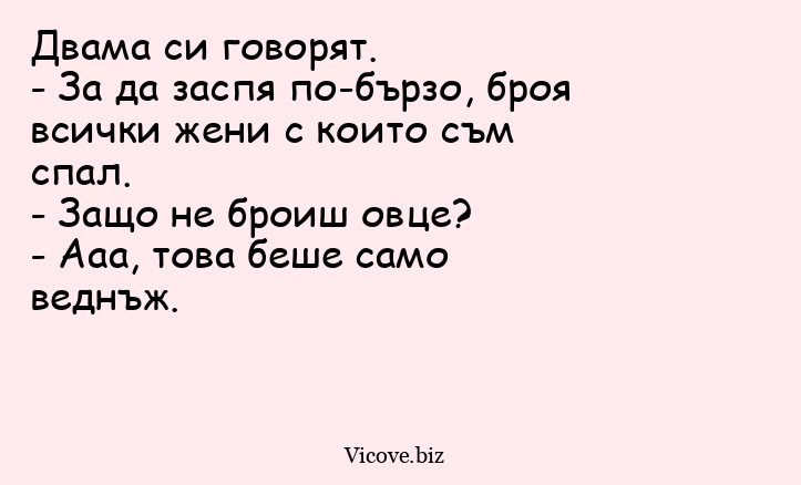 Двама си говорят. - За да заспя...