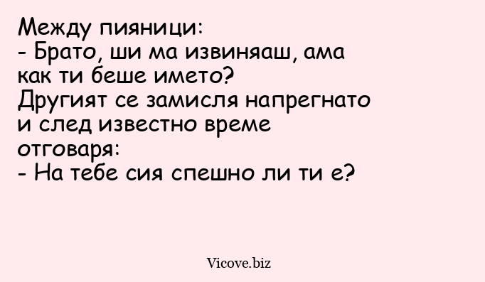 Пияният я погледнал с мътен поглед и изфъфлил: