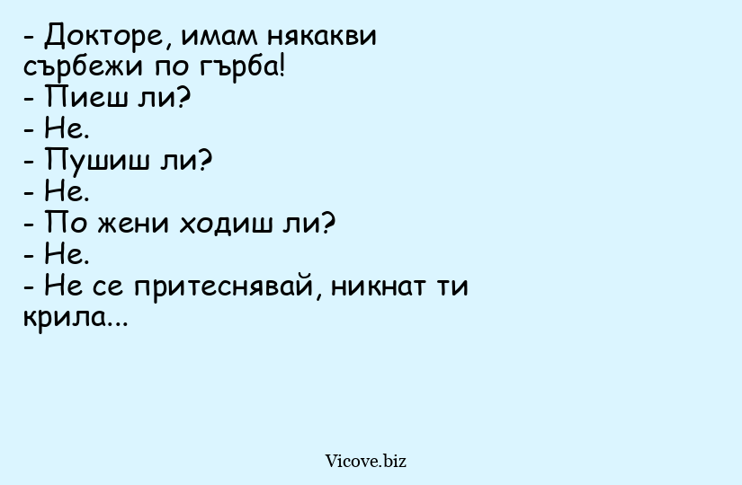 - Еми... за проктолог съм много весел. За венеролог съм много приказлив. А за гинеколог съм много влюбчив!