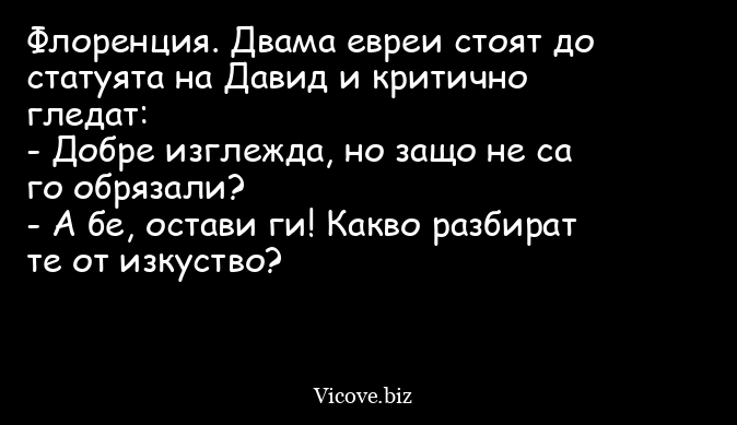 Флоренция. Двама евреи стоят до статуята на Давид и критично гледат: