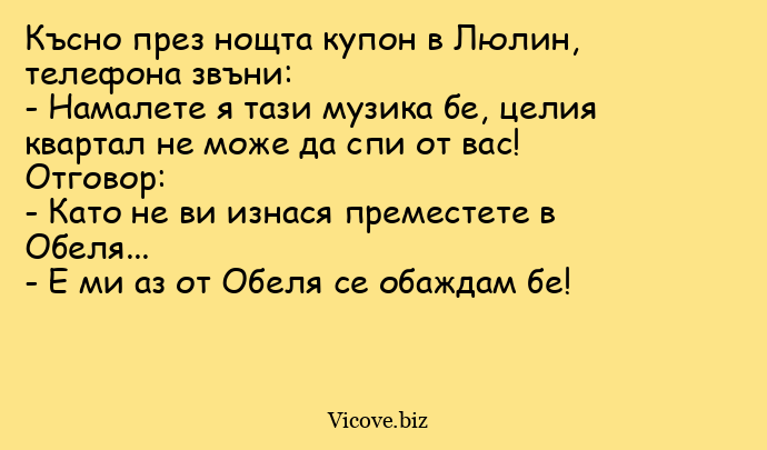 Късно през нощта купон в Люлин, телефона звъни: