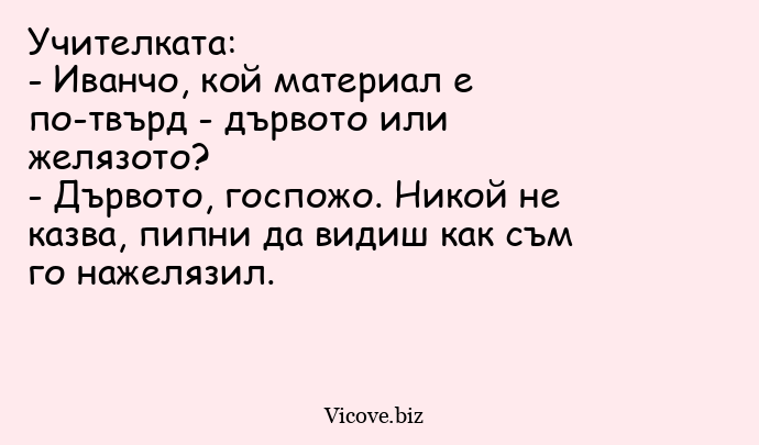- Иванчо, кой материал е по-твърд - дървото или желязото?