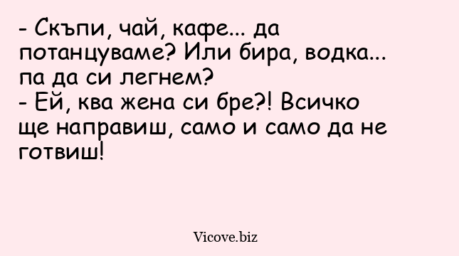 - Ей, ква жена си бре?! Всичко ще направиш, само и само да не готвиш!
