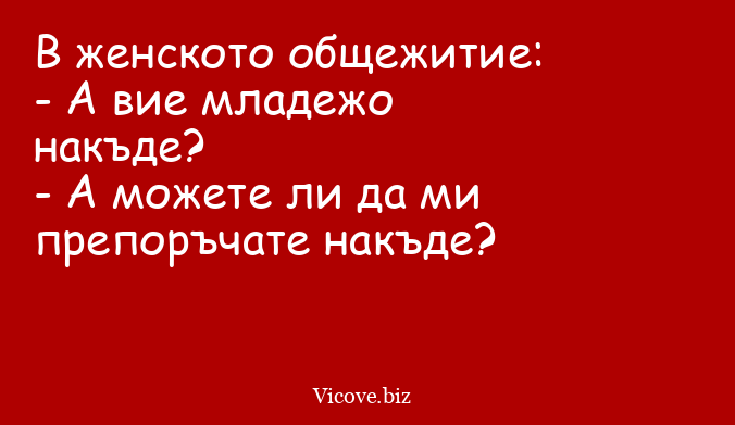 В женското общежитие: - А вие младежо...