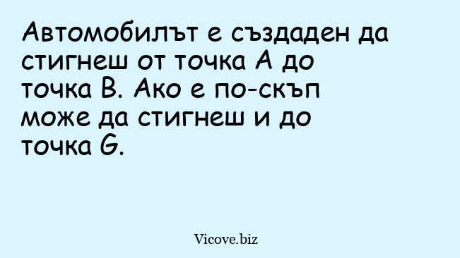 Автомобилът е създаден да стигнеш от точка А до точка В. Ако е по-скъп може да стигнеш и до точка G.