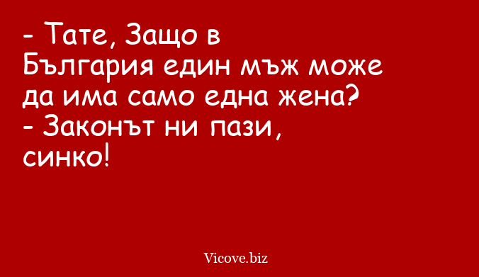 - Тате, Защо в България един мъж може да има само една жена?