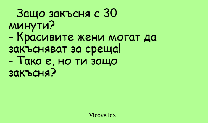 Жената, оглеждайки го внимателно от горе до долу, отговаря с усмивка: