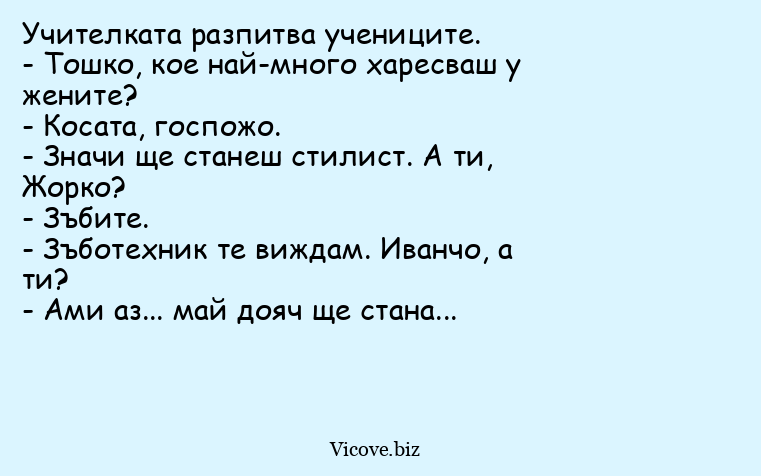 - Иванчо, смени си чаршафите, да не вземе момичето да забременее!