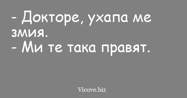 - Докторе, жена ми ме праща при вас. Не е доволна, че свършвам преди нея.