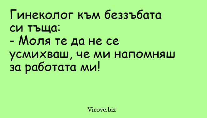 - Еми... за проктолог съм много весел. За венеролог съм много приказлив. А за гинеколог съм много влюбчив!