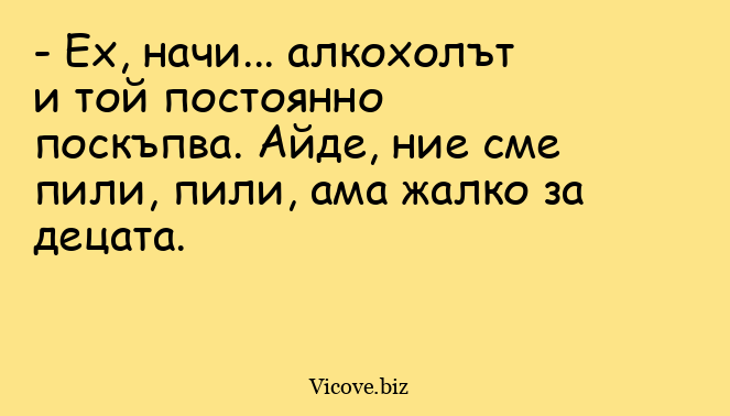 - Ех, начи... алкохолът и той постоянно поскъпва. Айде, ние сме пили, пили, ама жалко за децата.