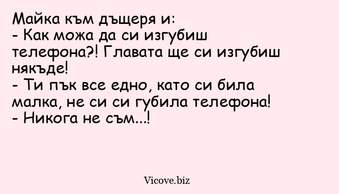 - Ти пък все едно, като си била малка, не си си губила телефона!