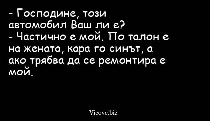 - Частично е мой. По талон е на жената, кара го синът, а ако трябва да се ремонтира е мой.