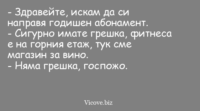 - Сигурно имате грешка, фитнеса е на горния етаж, тук сме магазин за вино.