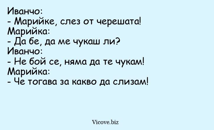 Иванчо: - Марийке, слез от черешата...