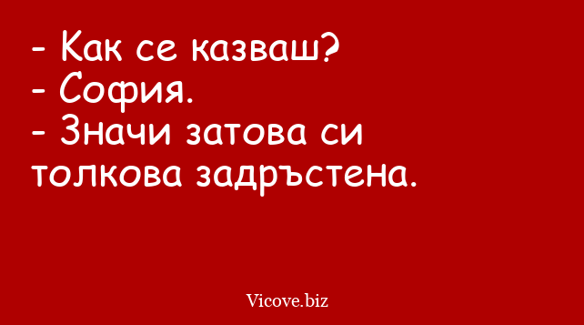 Момче и момиче се разхождат в парка. Няма откъде да си купят сладолед, няма кафе, няма нищо... Гледат табела: "Плюенето забранено! Глоба 10 лева". Момчето казва: