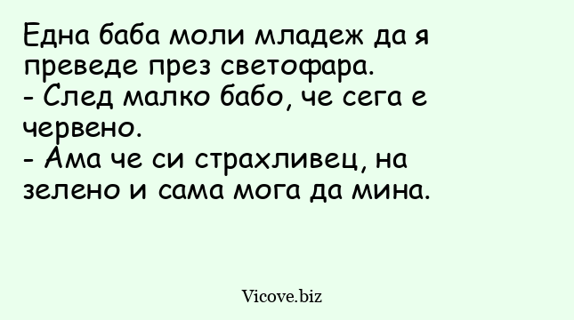 - Ама че си страхливец, на зелено и сама мога да мина.